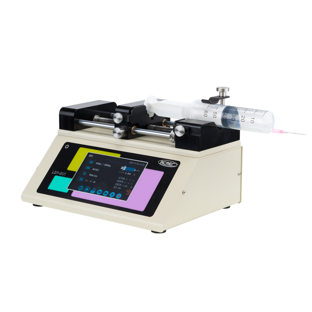 產品特點:5寸高清觸摸屏,界面友好、方便操控;高剛度底板保證系統穩定;精密的傳動機構和電機控制設計;適合微小流量液體傳輸,如靜電紡絲等;可以支持到200ml注射器